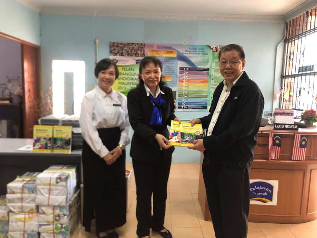 SPARKS CEO Dr Angie Garet is seen here handing over the TEACHER GUIDE BOOKS for Science and Maths. Year 1 and 2 to MESTR (represented by En. Kennedy Lee) . Mr Tee Kim Tian, the CFO of SPARKS Education looking on. These TGBs are distributed to all SK Schools in Sarawak. Written by SPARKS panel of experts, they assist Science and Maths teachers to plan and deliver Science and Maths lessons in English.